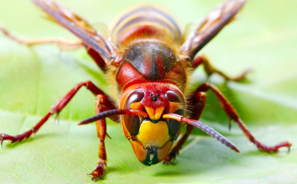 The European or giant hornet is an introduced species first reported in the United States in 1840 in New York. Currently, its geographical range extends from the Northeastern states west to the Dakotas, and south to Louisiana and Florida. It belongs to a family of wasps called the Vespids, which encompass all of the yellowjackets including the bald-faced hornets. Technically, it is the only hornet in North America.